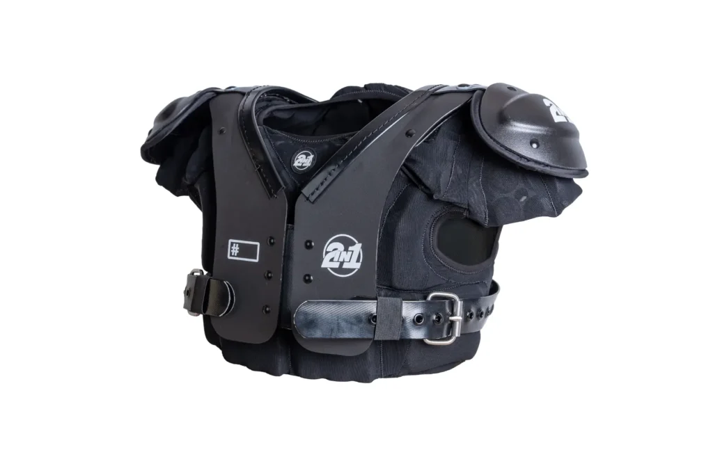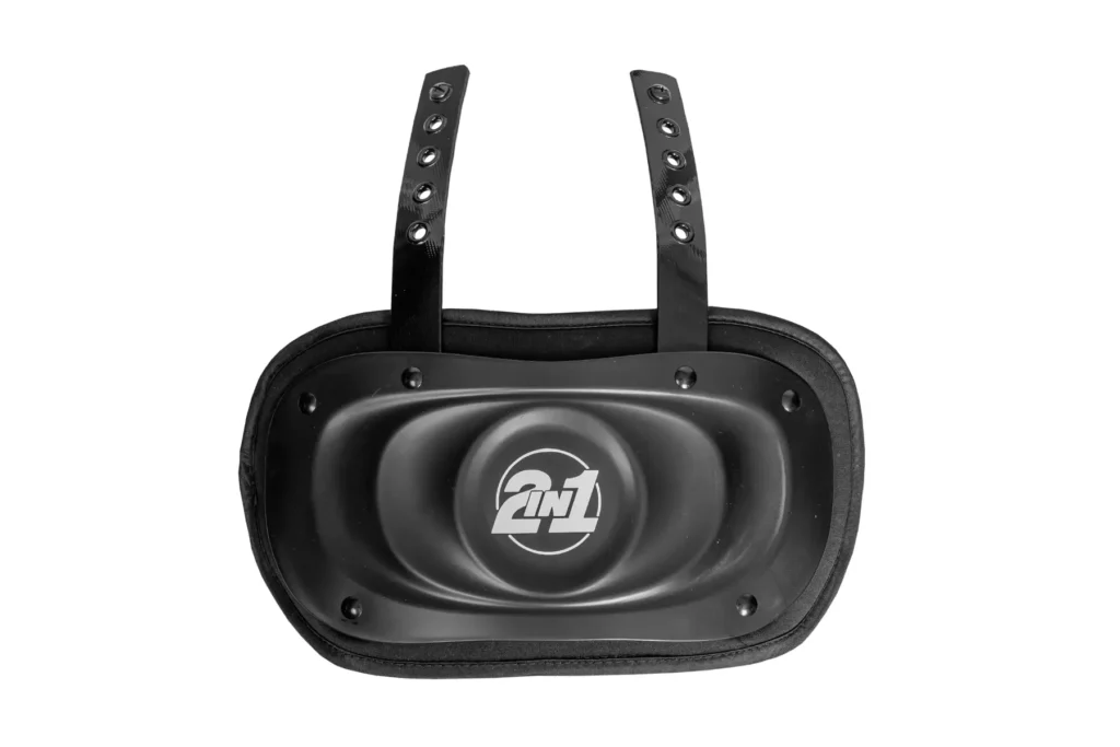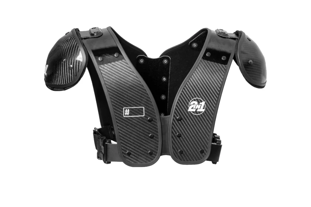 Wie der Name schon sagt, kombiniert das innovative 2inOne Shoulder Pad eine gepolsterte Weste mit einer Außenschale. Mit ihrer Länge und Kompression schützt die gepolsterte Weste die Rippen des Spielers/der Spielerin und passt sich optimal der Körperform an. Ein weiterer Vorteil: Die Weste kann separat zu Übungszwecken getragen werden, was den Spieler/die Spielerin schützt und ihm/ihr den Vorteil gibt, sich an die Ausrüstung zu gewöhnen.